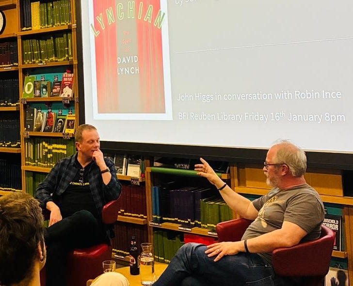 Thanks to all who came along to the BFI on London’s Southbank on the first anniversary of David Lynch’s death, to hear me discuss my book Lynchian with Robin Ince.